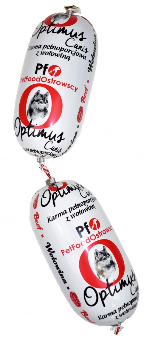 Pełnoporcjowa karma Optimus Canis 800g w formie dwóch mięsnych batonów pakowanych po 400g to pełnowartościowy i optymalnie zbilansowany posiłek dla psów dorosłych małych, średnich i dużych ras.